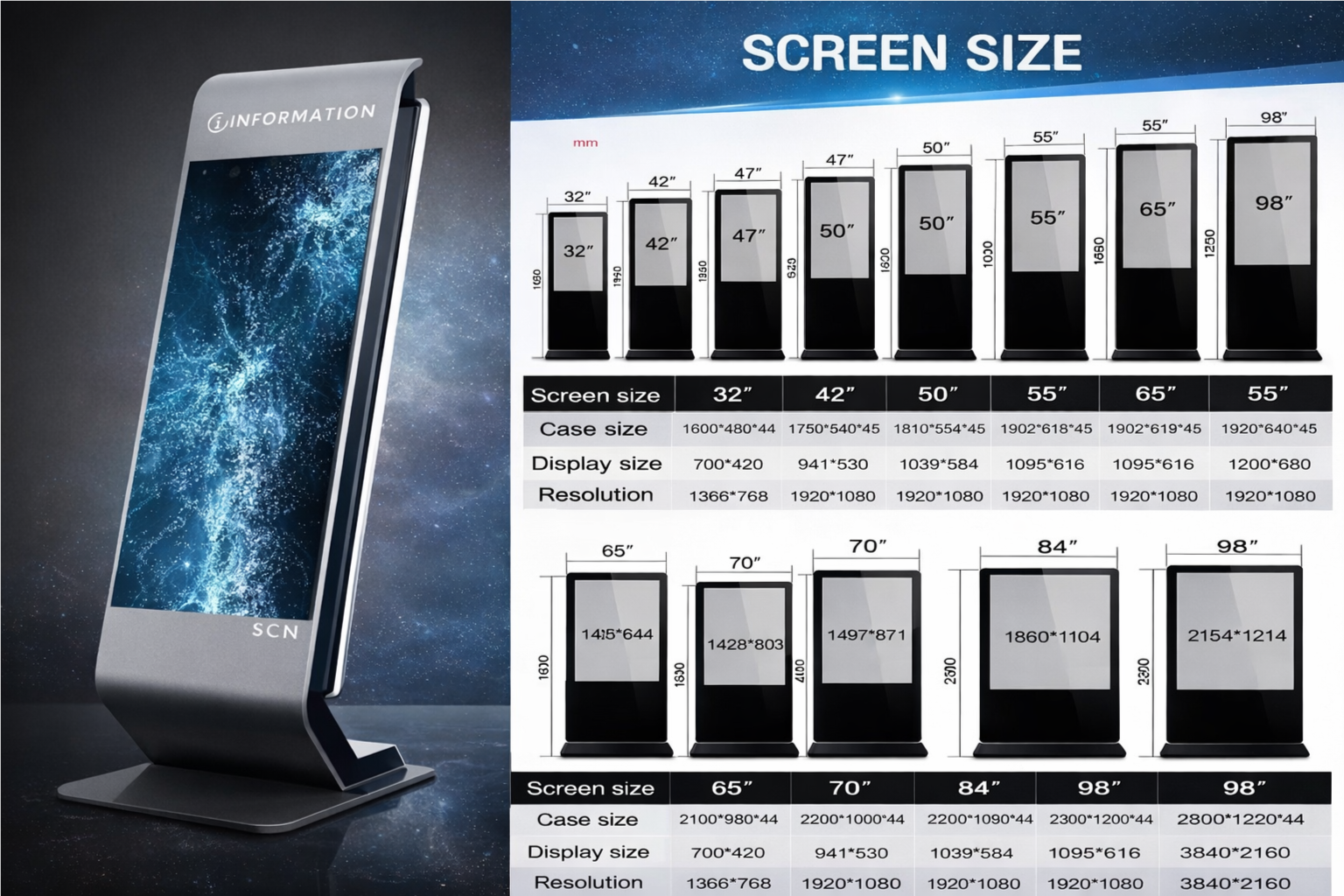 • - ขนาดจอ (กว้าง×สูง) หรือพื้นที่ติดตั้ง