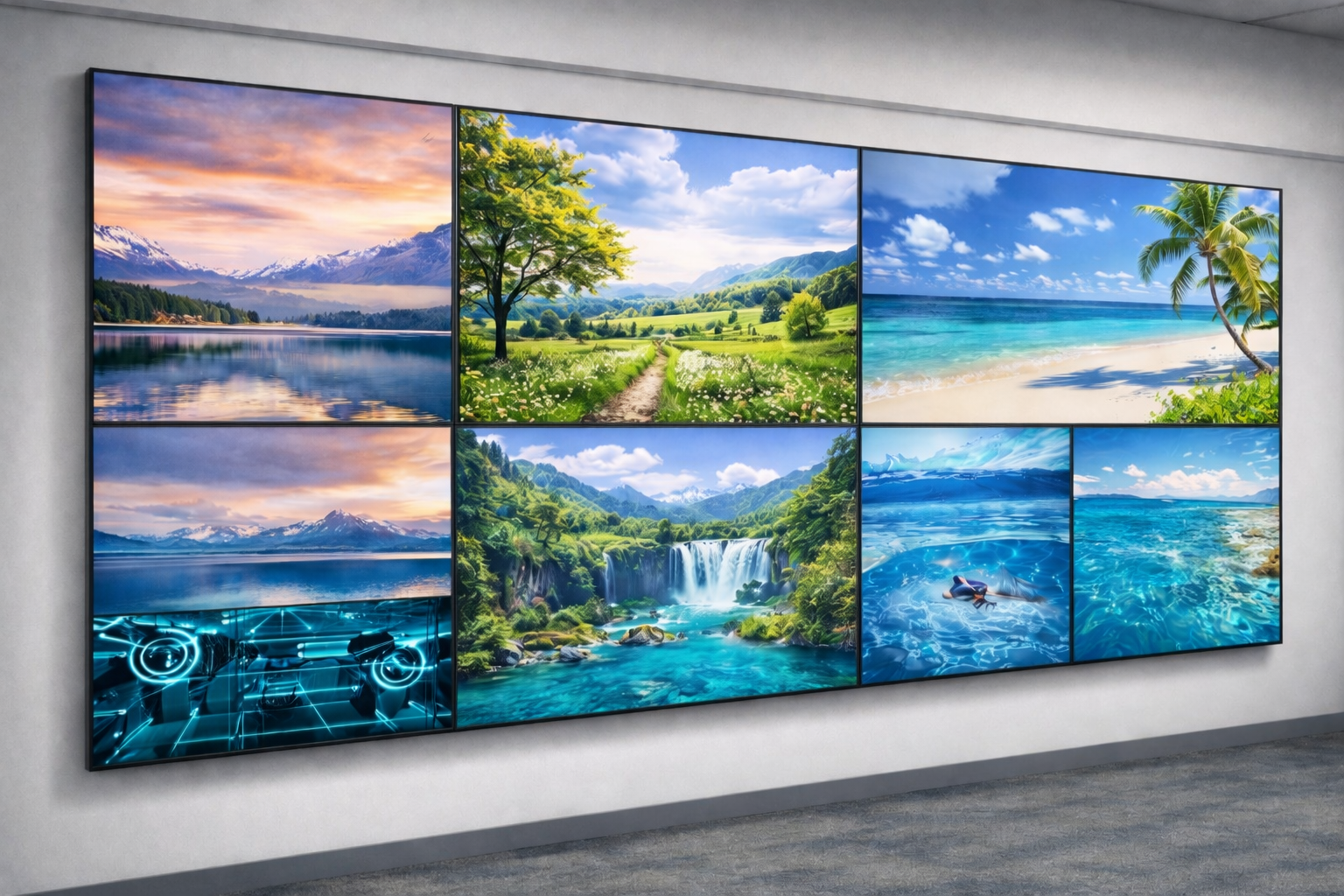 Video Wall / TV Wall คือระบบจอแสดงผลที่นำจอหลายจอมาต่อรวมกัน เพื่อแสดงภาพขนาดใหญ่แบบต่อเนื่อง เหมาะสำหรับการประชุม การแสดงข้อมูลแบบ Real-time ศูนย์ควบคุม และงานพรีเซนต์ระดับองค์กร เราดูแลตั้งแต่การออกแบบ การเลือกจอ การควบคุมภาพ ไปจนถึงการติดตั้งและดูแลหลังการขาย